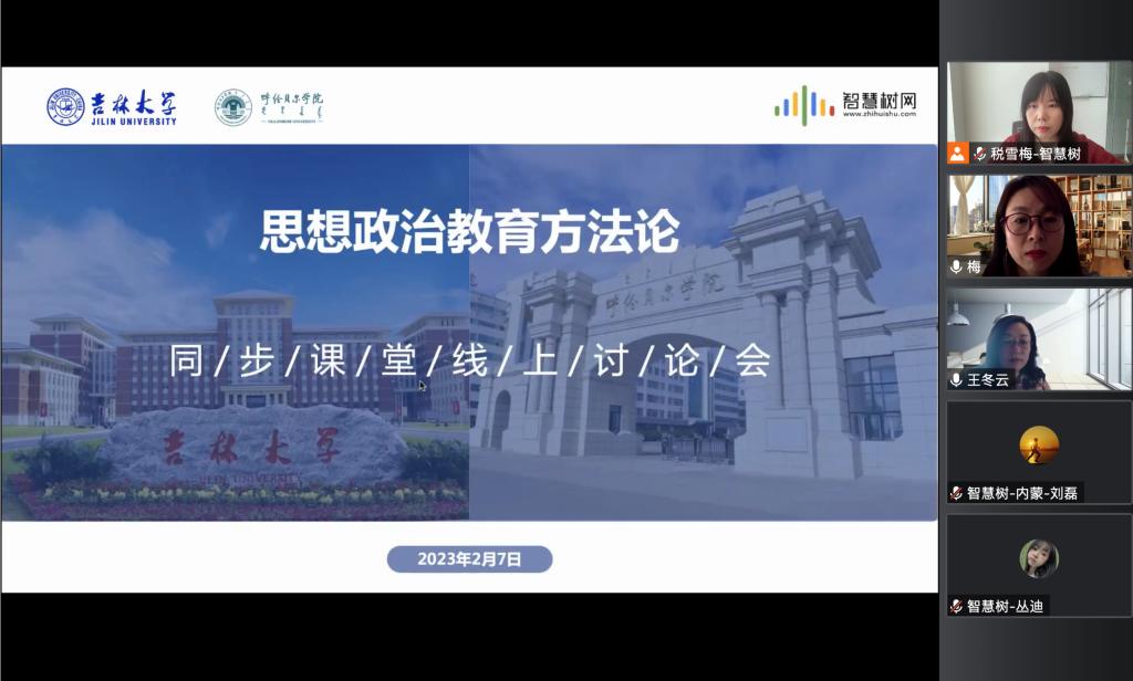 为了更好地推进思想政治教育专业建设,在“慕课西行2.0”项目的支持下,近日,呼伦贝尔学院成人免费黄色视频与吉林大学成人免费黄色视频在线上召开《思想政治教育方法论》同步课堂研讨会。会议由“智慧树”平台的税老师主持。会上,首先由吉林大学成人免费黄色视频的王冬云教授介绍“思想政治教育方法论”课程的基本情况、教学内容、授课形式等方面,充分展现了本课程的建设实效与经验。其次,我院青梅老师介绍了本课程的基本情况、教学安排与进度、学生情况和授课形式等方面,并与吉林大学成人免费黄色视频开展同步课堂合作的初步的需求与展望。同时,智慧树平台的税老师简单介绍了两所学校同步课堂教学的具体要求、相关准备和注意事项。汇报结束后,吉林大学成人免费黄色视频的课程团队为我校本课程进行问诊把脉、开出良方。在两所学校课程团队老师热烈地讨论之下,最终确定了“思想政治教育方法论”课程同步课堂的次数、主题、时间、上课形式和课堂教学环节。本次研讨会是思想政治教育专业进行线上合作的良好开端,是加强两校教师紧密协作交流的研讨会,是一次异地云端同上一堂课的教研活动。不仅有助于提升教师的教学能力,还能提高学生的知识水平,更重要的是学院在对外交流合作与进一步提高教学质量等各项工作上将迈上新的台阶、做出更好的成绩。