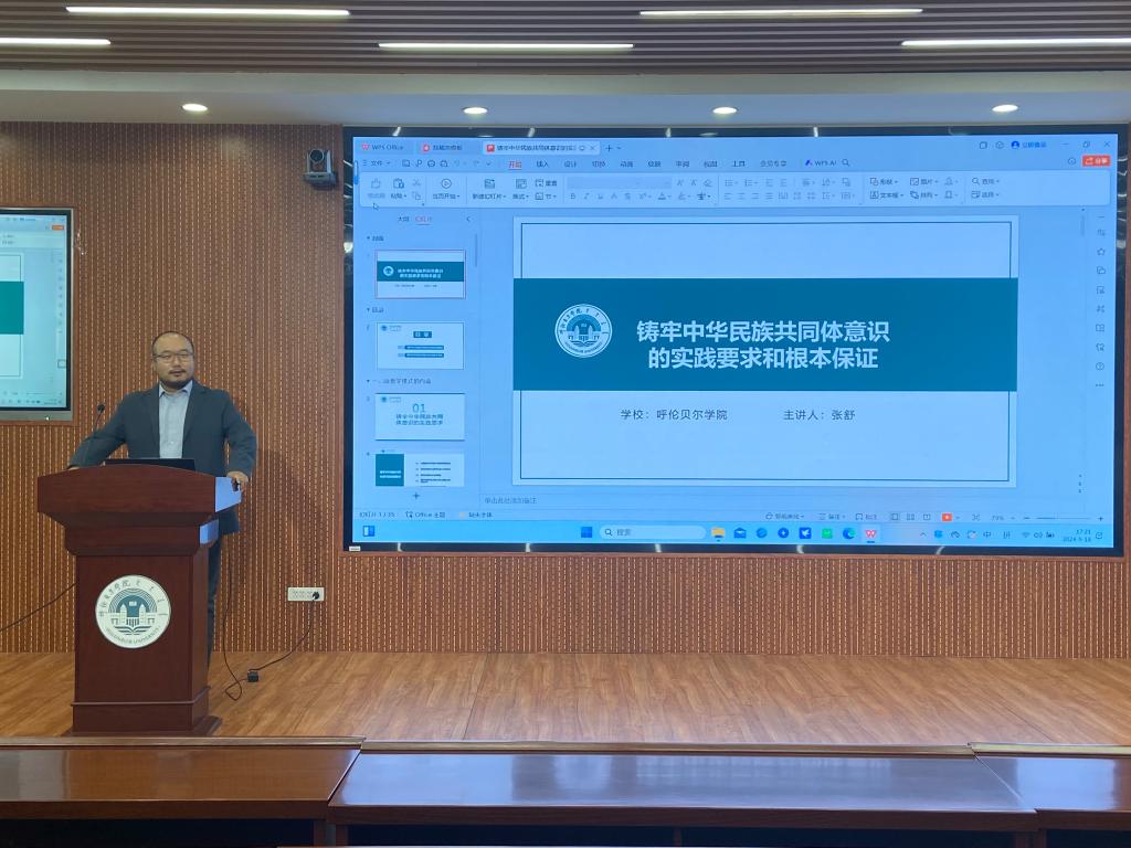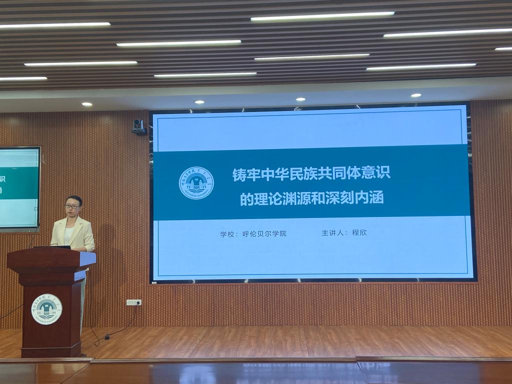 为深入学习贯彻党的二十届三中全会精神,进一步推动铸牢中华民族共同体意识走深走实,更好地履行举旗帜、聚民心、育新人、兴文化、展形象的使命任务,9月18日下午,成人免费黄色视频铸牢中华民族共同体意识教研室教师张舒、程欣、窦红伟三位教师受呼伦贝尔市民委和校宣传部委托进行了铸牢中华民族共同体意识主题宣讲。