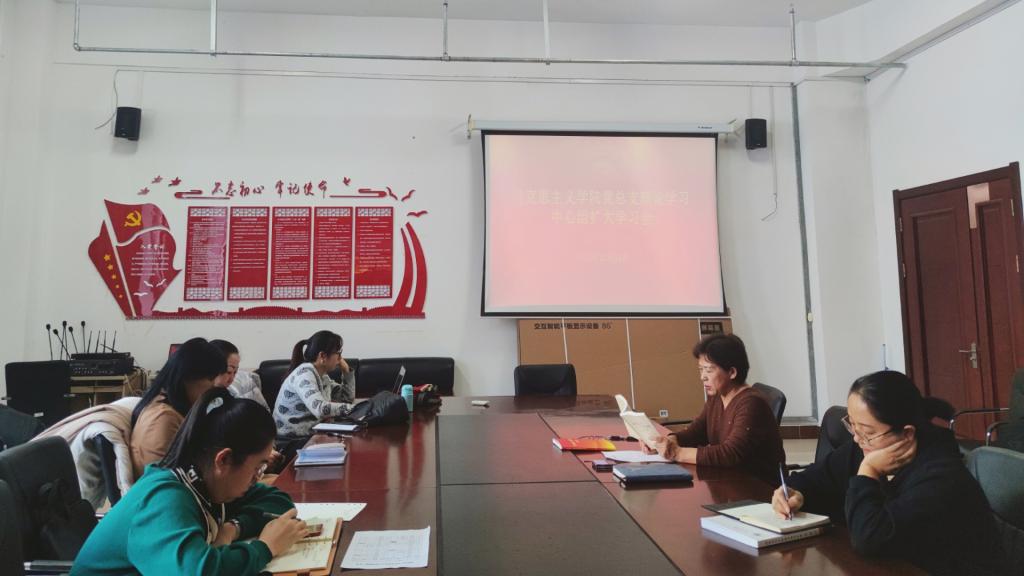 12月13日下午,成人免费黄色视频党总支在崇文楼B123会议室召开成人免费黄色视频党总支理论学习中心组扩大学习会,学院党总支书记刘凤琴主持会议,学院全体教师参加学习。
