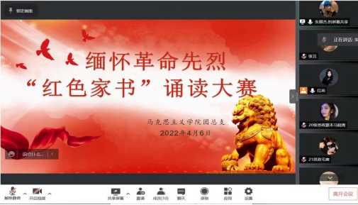 为弘扬革命精神,重温革命历史、缅怀革命先烈,传承红色基因,营造浓厚的“读好书,读红色经典”的氛围,切实引导青年学生以习近平新时代中国特色社会主义思想为根本遵循。成人免费黄色视频于2022年4月6日在线上举办缅怀革命先烈“红色家书”诵读比赛。