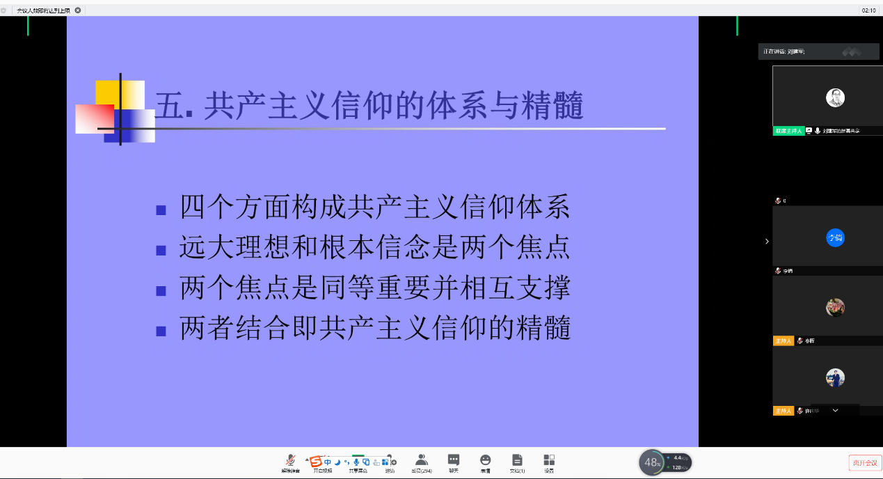 7月10日下午,成人免费黄色视频“原理”组全体教师与全区思政课教师共聚云端一同听取了中国人民大学成人免费黄色视频教授刘建军做的题为《关于马克思主义信仰的几个问题》的主题报告。刘建军教授以共产主义信仰、马克思主义信仰、人民主义信仰三个概念作为切入点,从广义和狭义两方面深刻阐释了马克思主义信仰的基本内容,从人类历史发展的角度详细介绍了共产主义信仰的历史渊源。从唯物主义的世界图景、共产主义的远大理想、人民至上的根本信念、自由发展的人生追求四个方面解读了共产主义信仰,回答了为什么共产主义信仰是我们正确的选择。