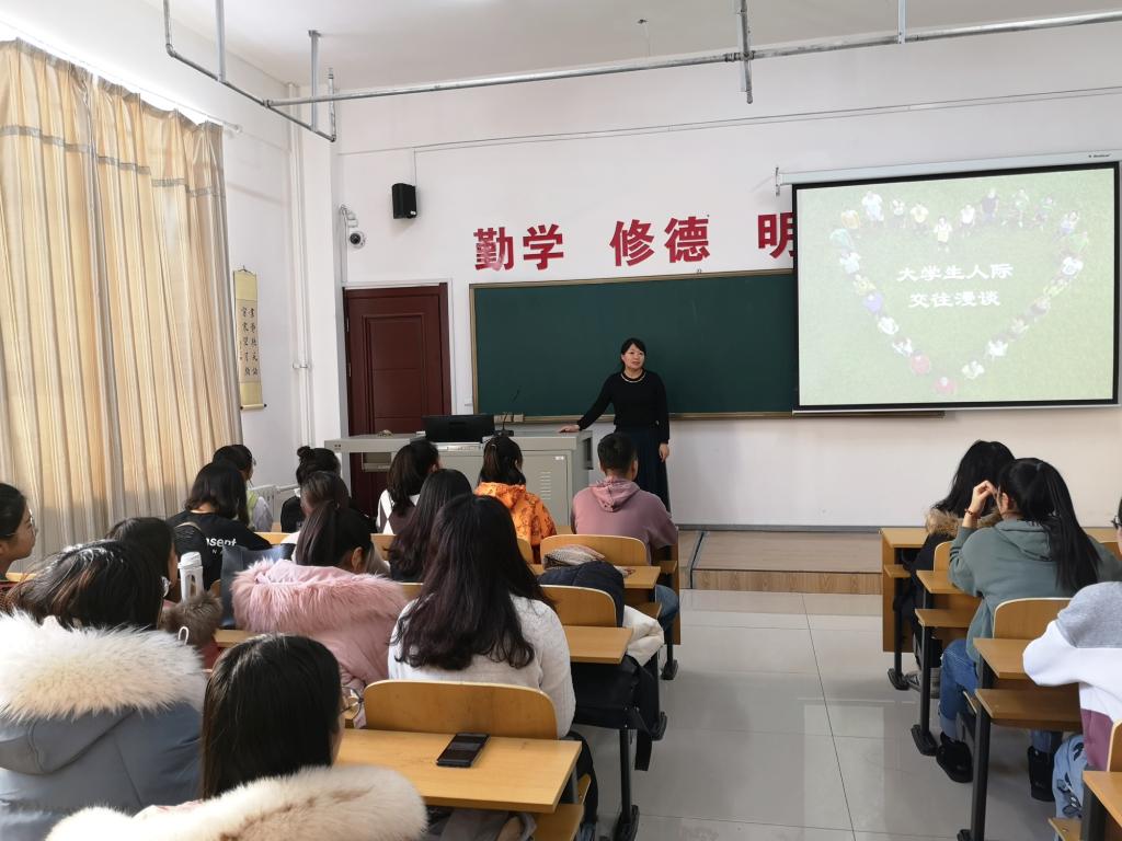 为进一步加强学生的人际交往能力和人际沟通能力,有效帮助大学生处理好人际交往等方面遇到的具体问题,成人免费黄色视频于2019年12月5日在崇文楼122教室举行“大学生人际交往漫谈”专题讲座。本次讲座由王鑫老师讲授,成人免费黄色视频的60余名学生聆听了本次讲座。