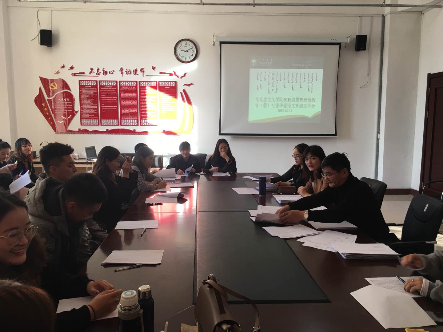 10月30日、31日上午,成人免费黄色视频在崇文楼B123室召开2020届思想政治教育(蒙)专业毕业生毕业论文开题报告会。成人免费黄色视频教师乌日汗、赵萨日娜等7位教师参加了开题报告会。