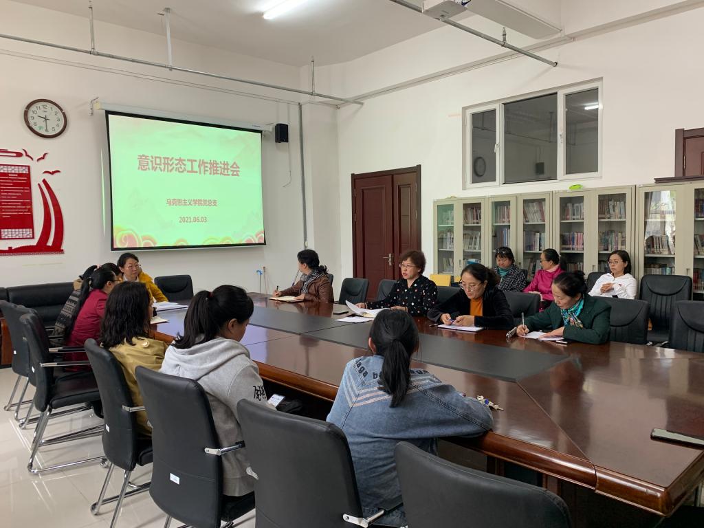 2021年6月3日,成人免费黄色视频召开意识形态工作推进会。学院党总支书记刘凤琴、副院长吴秀芳和学院教师参加会议。