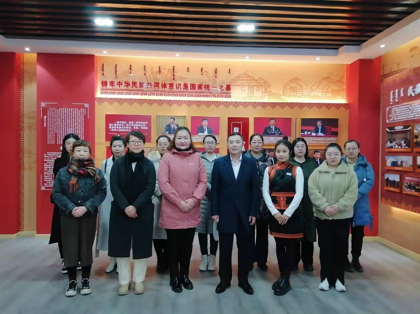 4月7日上午,成人免费黄色视频“铸牢中华民族共同体意识”教研室全体教师在教研室主任海龙教授的带领下赴陈旗民族团结进步教育基地进行参观和现场集体备课。陈旗民委副主任乌仁高娃陪同参观。