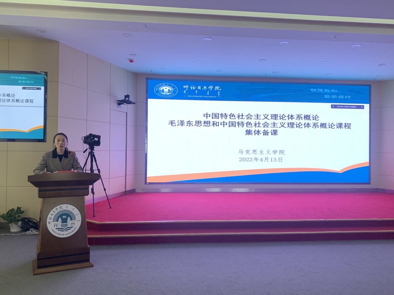 2022年4月13日下午,成人免费黄色视频开展“中国特色社会主义理论体系概论”“毛泽东思想和中国特色社会主义理论体系概论”课程集体备课活动,活动邀请内蒙古党校(行政学院)政治学教研部主任庄虔友教授进行专题讲授,成人免费黄色视频全体教师在崇文楼A201观看集体备课活动,院长李俏主持活动。