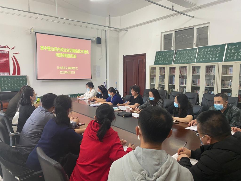 2022年4月27日,成人免费黄色视频在崇文楼B123会议室召开集中整治党内政治生活庸俗化交易化问题专题会,学院全体党员干部参加会议。